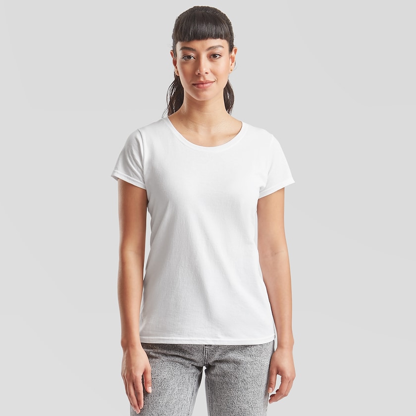 T-Shirt mit V-Ausschnitt für Damen von Fruit of the Loom. Es wird in Plastikhülle verpackt geliefert. Gibt es auch als Herrenmodell.