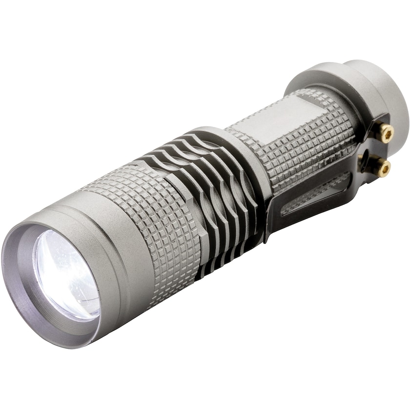 Kompakte, aber sehr kraftvolle Taschenlampe. Cree-Taschenlampe mit sehr starkem Licht. Batterien im Lieferumfang.