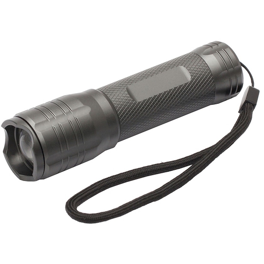 Hochwertige Taschenlampe mit drei Lichtarten. Wählen Sie zwischen starkem, energiesparendem oder blinkendem Licht. Die Taschen lampe ist durch 3 AAA Batterien angetrieben (im Lieferumfang enthalten). Taschenlampe wird in einem Beutel aus Nylon geliefert. Hat eine Kapazität von 250 Lumen, eine Reichweite von 150 m und 100 000 Stunden LED Beleuchtungszeit. Aufschrifft erfolgt durch Lasergravur.