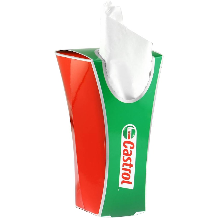 Taschentuchbox fürs Auto. Die Box besteht aus Pappkarton und enthält 50 Taschentücher. Die Taschentücher sind zweilagig und bestehen aus Zellulose. Der gesamte Karton wird nach Ihren Wünschen bedruckt.