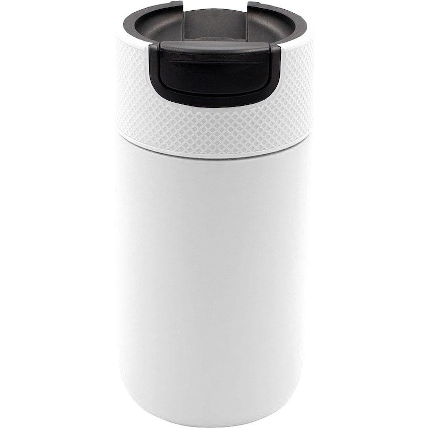 Thermosbecher aus Edelstahl mit matter Oberfläche. Vakuumisoliert mit doppelten Wänden. Hält heiße Getränke bis zu 10 Stunden lang warm. Kann mit nur einer Hand geöffnet werden. Auslaufsicher.