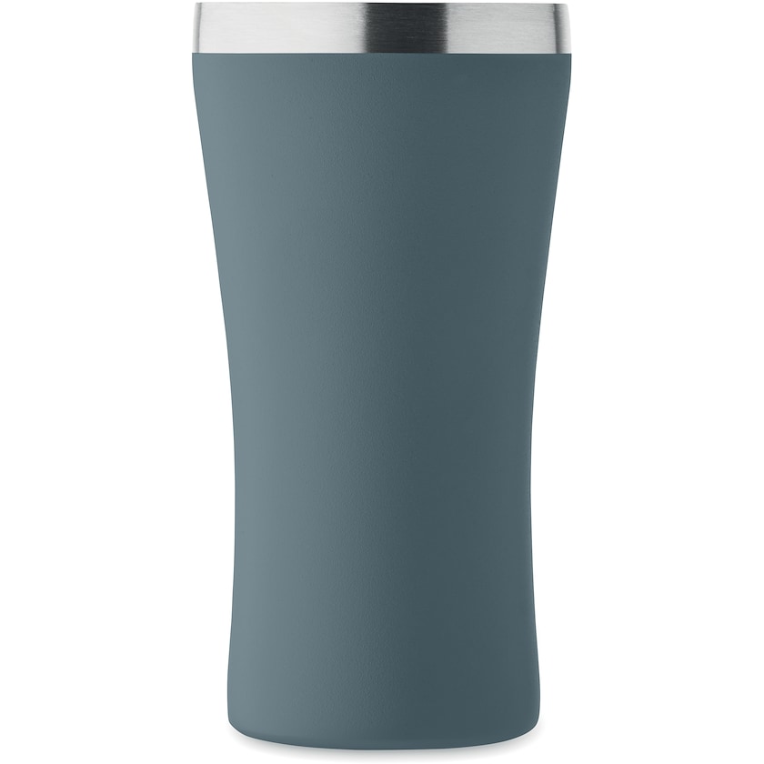 Kleiner vakuumisolierter Thermosbecher. Gilroy besteht zu 90 % aus recyceltem Edelstahl und zu 10 % aus normalem Edelstahl. Der Deckel besteht aus Polypropylen und verfügt über eine Trinköffnung.