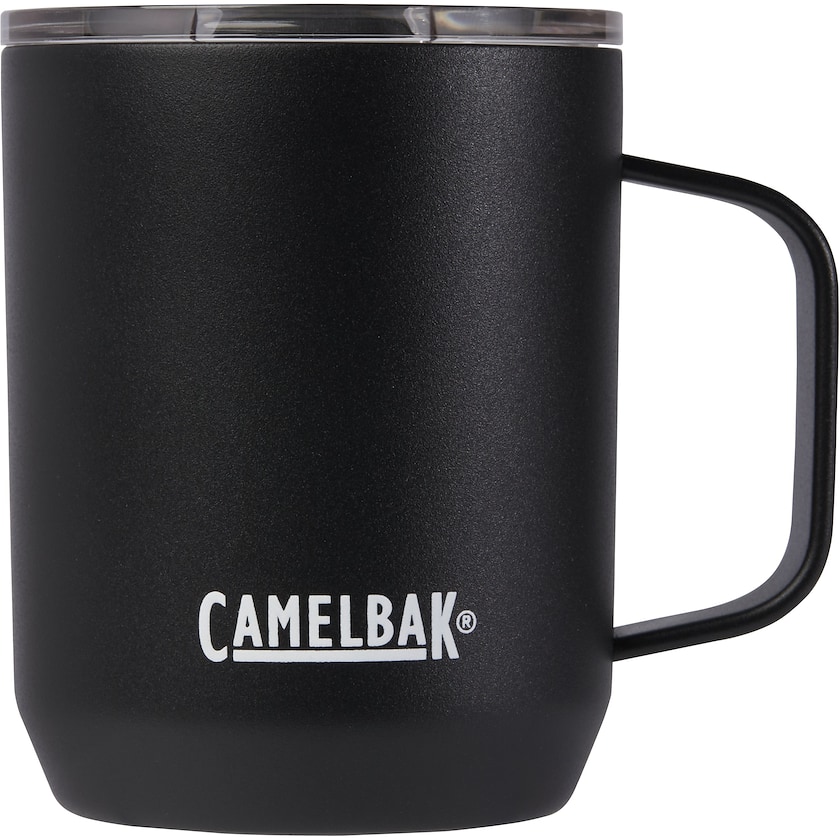 Thermosbecher mit Henkel von Camelbak. Der Becher ist aus rostfreiem Stahl gefertigt und hat doppelte Wände, die vakuumisoliert sind. Die Getränke bleiben vier Stunden lang heiß und sechs Stunden lang kalt. Der Deckel ist auslaufsicher. Der Boden ist mit einer Silikonoberfläche versehen, so dass der Becher auf jeder Oberfläche fest steht.