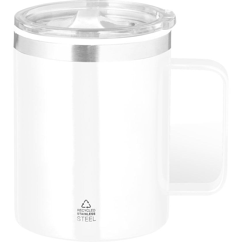 Thermosflasche mit Griff aus recyceltem Edelstahl. Racine hat doppelte Wände, die Ihr Getränk lange warm halten. Der Deckel ist aus Polypropylen gefertigt.