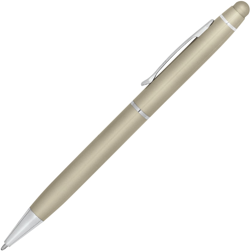 Eleganter Touchpen aus Metall. Der Stift hat blaue Tinte und eine dezente Touch-Funktion an der Spitze. Die Kennzeichnung kann mit Druck oder Lasergravur erfolgen.