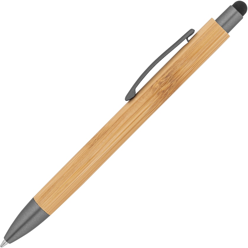 Touchpen aus Bambus. Der Stift besteht aus einer harten Tinte. Die Markierung kann entweder durch Druck oder Lasergravierung erfolgen.