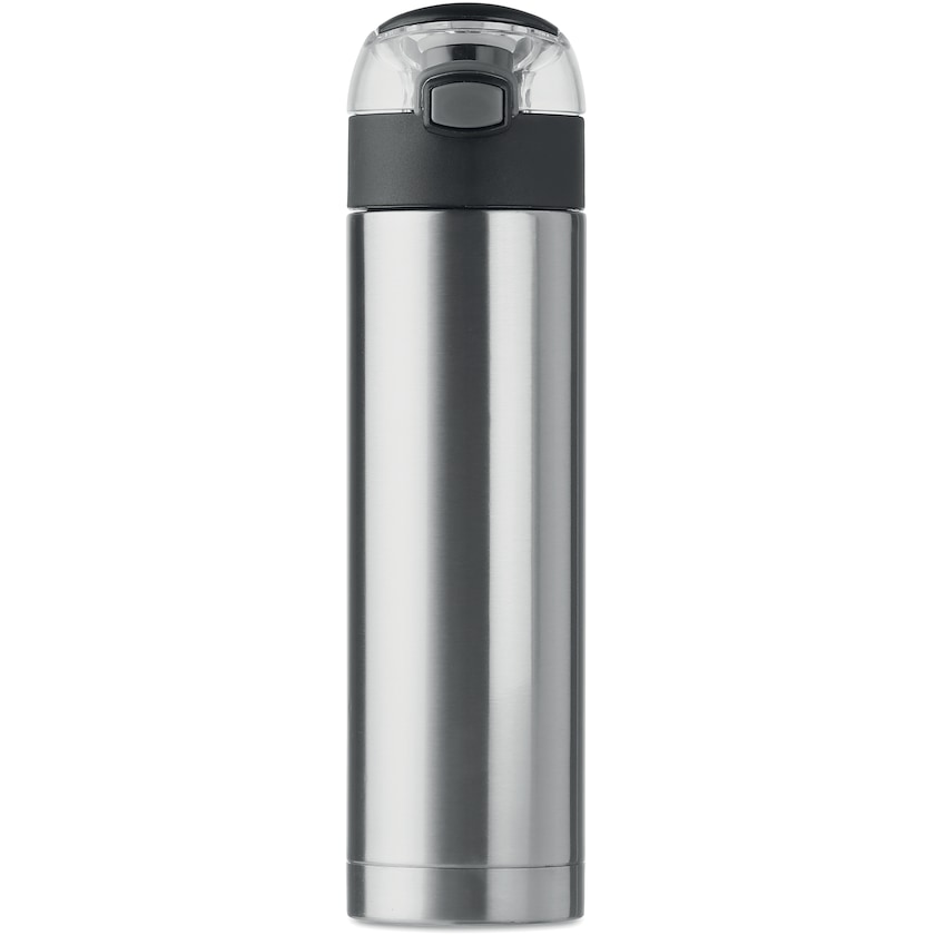 Trinkflasche aus rostfreiem Edelstahl und einem einzigartigen Verschluss mit runterdrücken-und-drehen-Funktion. Die Flasche ist doppelwändig und absolut auslaufsicher. Eine hochwertige Trinkflasche zu einem guten Preis.