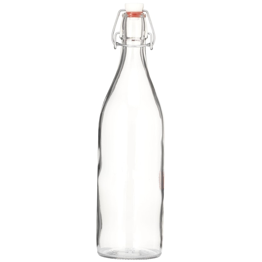 Vielseitige Glasflasche mit Schnappverschluss. Perfekt für alles von Wasser und Erfrischungsgetränken bis hin zu Olivenöl und Körnern. Hergestellt in Italien.