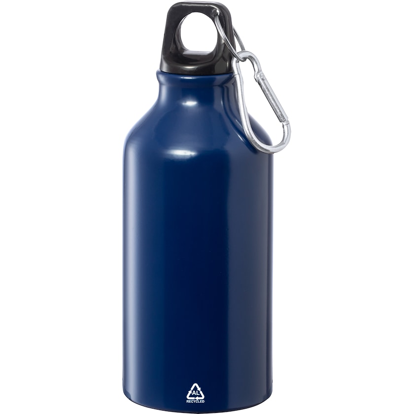 Hochwertige Wasserflasche aus recyceltem Aluminium. Cincinnati fasst 40 cl. Ein Symbol auf der Vorderseite zeigt an, dass die Flasche aus recyceltem Aluminium hergestellt ist. Wählen Sie zwischen Druck und Lasergravur.
