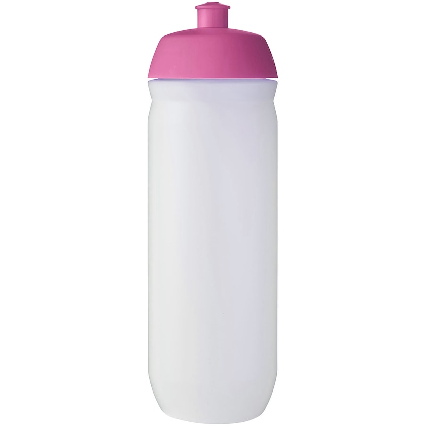 Große quetschbare Wasserflasche mit Logo. Arrow Clear besteht aus flexiblem MDPE, das die Flasche zusammendrückbar macht. Die Flasche ist matt-transparent und der Deckel ist einfarbig. Die Flasche wird in Großbritannien hergestellt.