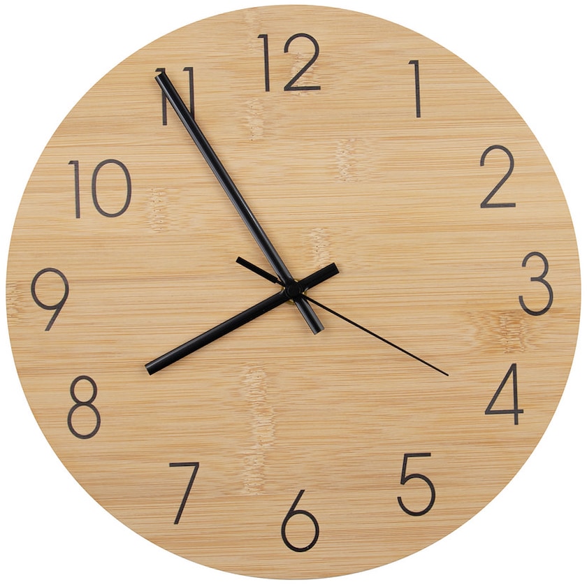 Stilvolle Bambus-Wanduhr. Harris hat große und klare Zahlen, die das Lesen erleichtern. Die Markierung erfolgt mittels Lasergravur.
