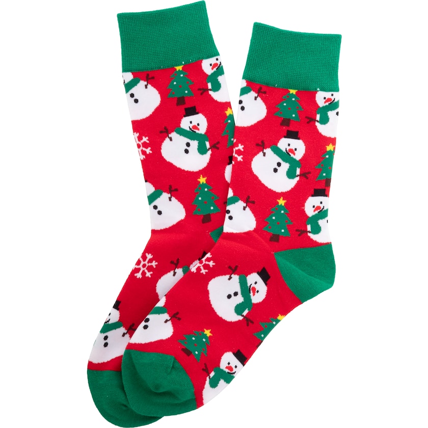 Weihnachtsstrümpfe mit verschiedenen Motiven. Die Socken bestehen aus 73 % Baumwolle, 25 % rPET und 2 % Elasthan. Mischen Sie frei zwischen den Größen 38-42 und 43-46. Der Druck erfolgt auf dem Papierbanner, das um jedes Paar Socken gewickelt ist.