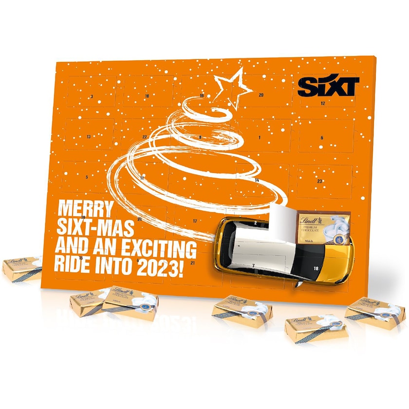 Umweltfreundlicher Adventskalender mit Milchschokolade von Lindt. Die Box ist FSC-zertifiziert und der Einsatz stammt aus recyceltem Material. Auf der Rückseite befindet sich eine Stütze, damit der Adventskalender auf einem Tisch aufgestellt werden kann.