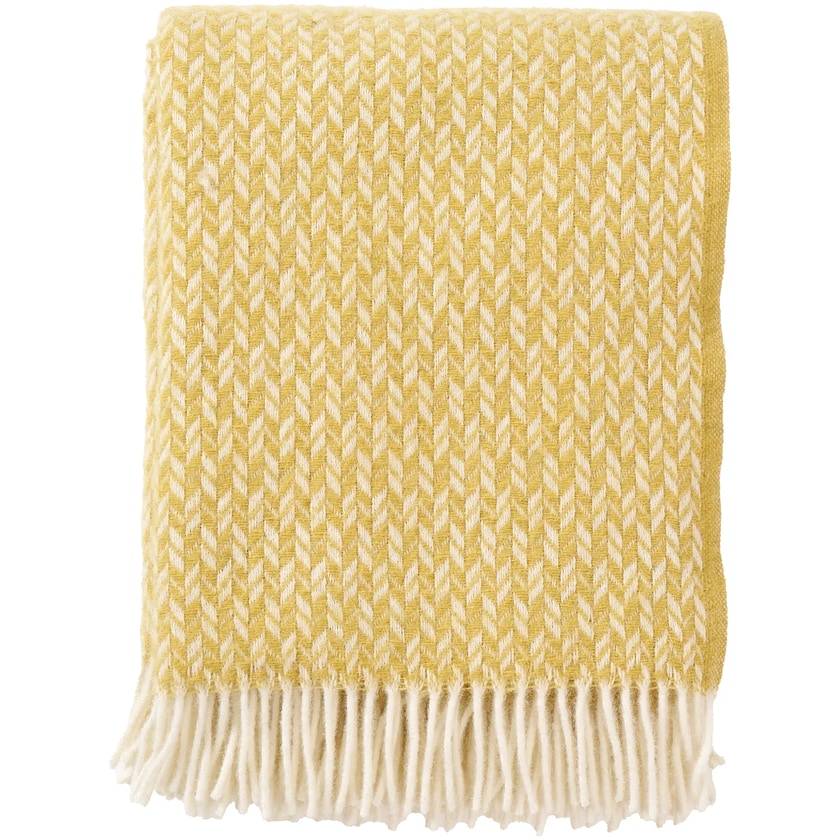 Ansprechende Wolldecke aus recycelter Wolle. Die Wolldecke Lovik besteht zu 25 % aus recycelter Wolle und zu 75 % aus normaler Lammwolle. Ansprechende Decke aus natürlichen Materialien.