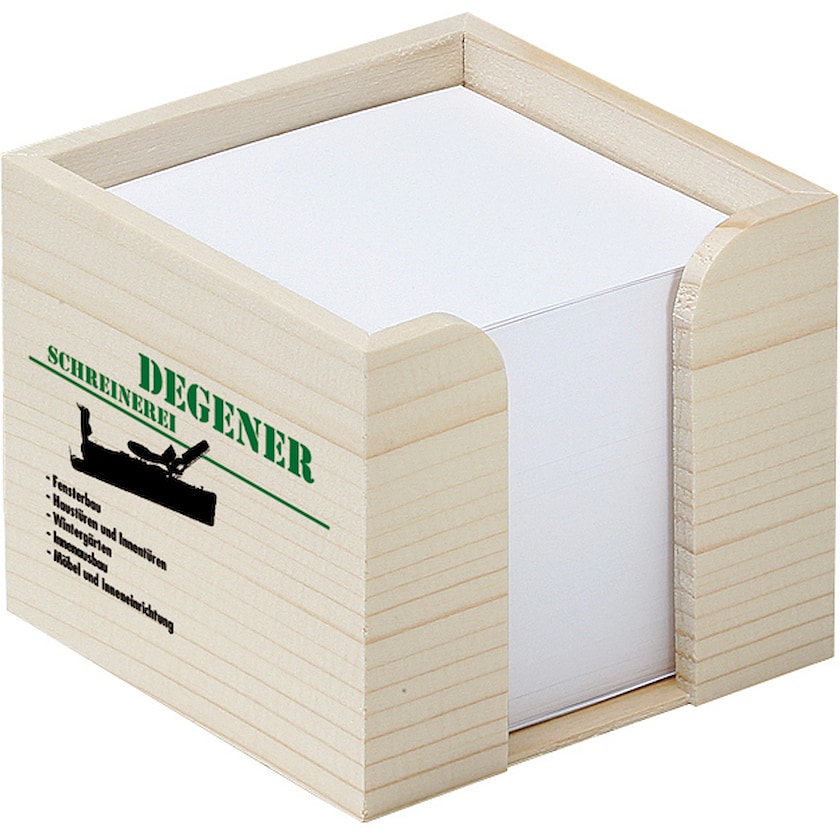 Zettelbox in rustikaler Holzbox mit großer Druckfläche. Die einzelnen Blätter können nicht bedruckt werden.