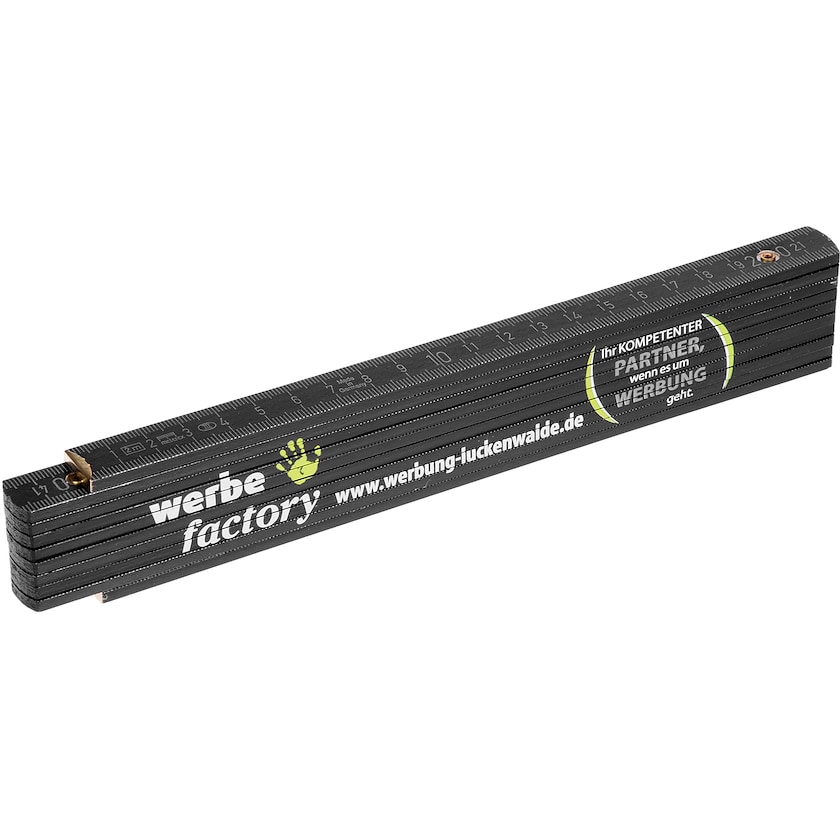 Zollstock aus hochwertiger Buche in den Farben schwarz und silber. Der Zollstock Tesla eignet sich für den professionellen Gebrauch. Erfüllt die EG-Baumusterprüfbescheinigung, Genauigkeitsklasse III E. Die Gelenke sind aus Kunststoff.